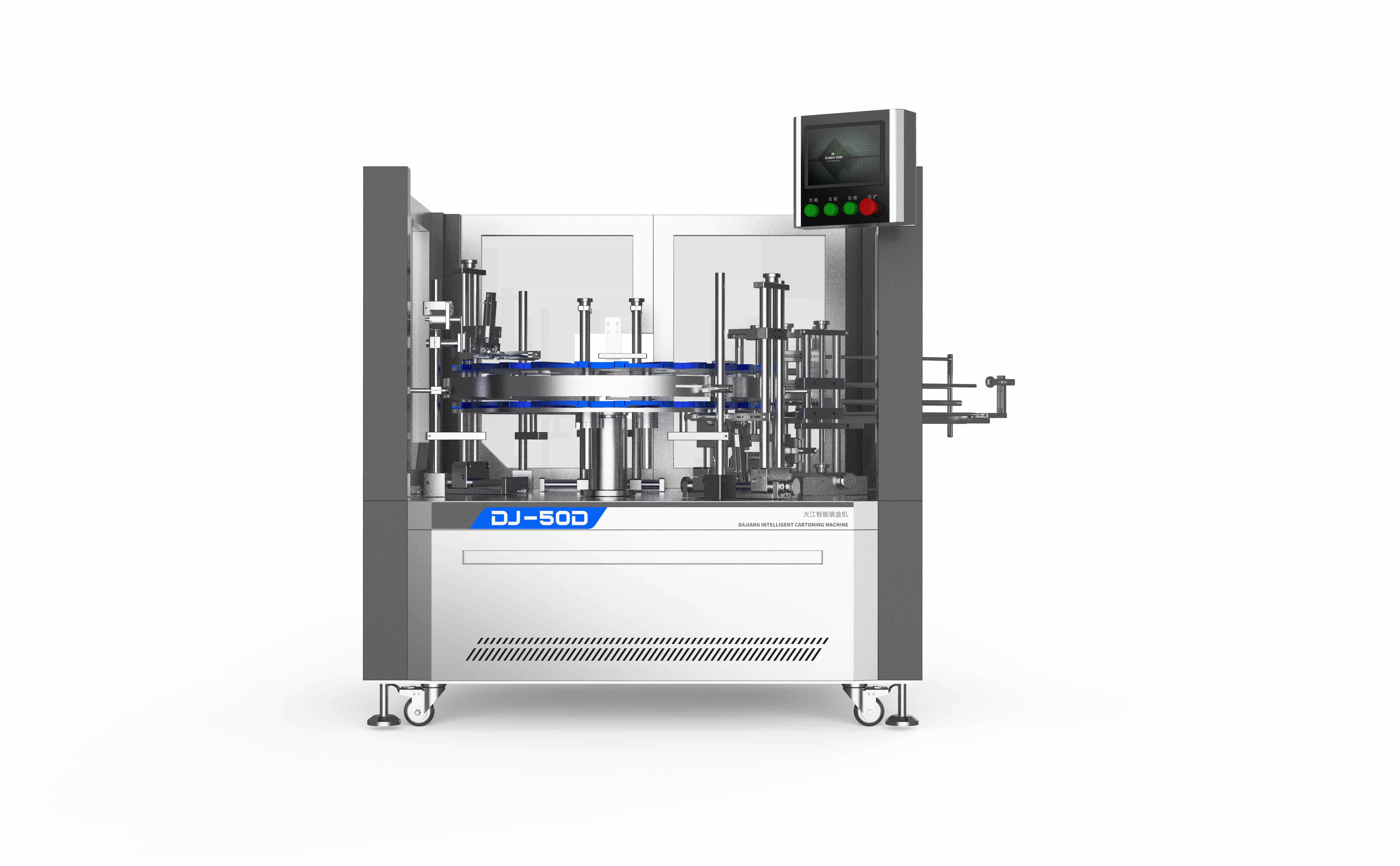 DJ-50多功能立式裝盒機適應(yīng):制藥行業(yè),食品行業(yè),化妝品行業(yè),電子行業(yè)紙盒立式自動成型包裝。