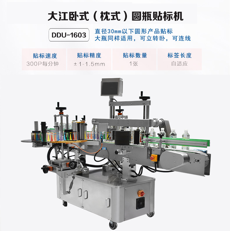 DDU-1604立式圓瓶貼標機 適用范圍:用途廣泛!主要適用于醫(yī)藥、日化、食品等行業(yè)的圓柱形包裝容器的自動貼標.該機拓展性強!可選配各類打印機完成在線實時打印,可單機使用,亦能連接生產(chǎn)線使用主要性能結(jié)構(gòu)特點:1、中英文觸控屏操作系統(tǒng),真正實現(xiàn)人機對話,操作簡單易學(xué)…